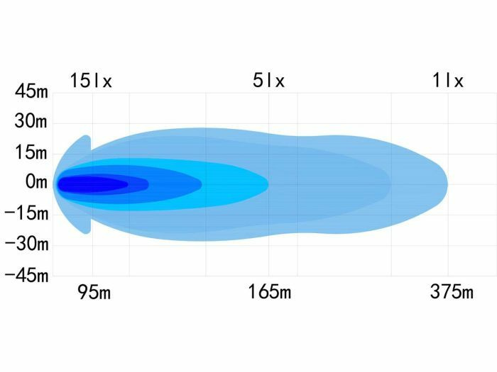 Despite its small size, it produces an impressive 3500 lumens with a bright and comfortable 5000 K color temperature for optimal visibility. In boost mode, the light reaches 1 lux at 375 meters — proving that performance is not limited by size.