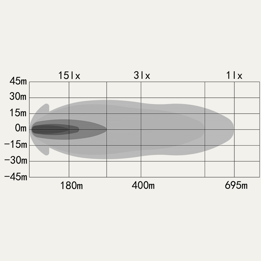 The dynamic start-up sequence of the position light in white and amber gives your vehicle a modern look. With the Boost function, the light bar produces up to 9,780 lumens and reaches 695 meters at 1 lux. The 5000K color temperature ensures comfortable lighting, while the driving beam pattern provides wide and long-range visibility in all driving conditions.