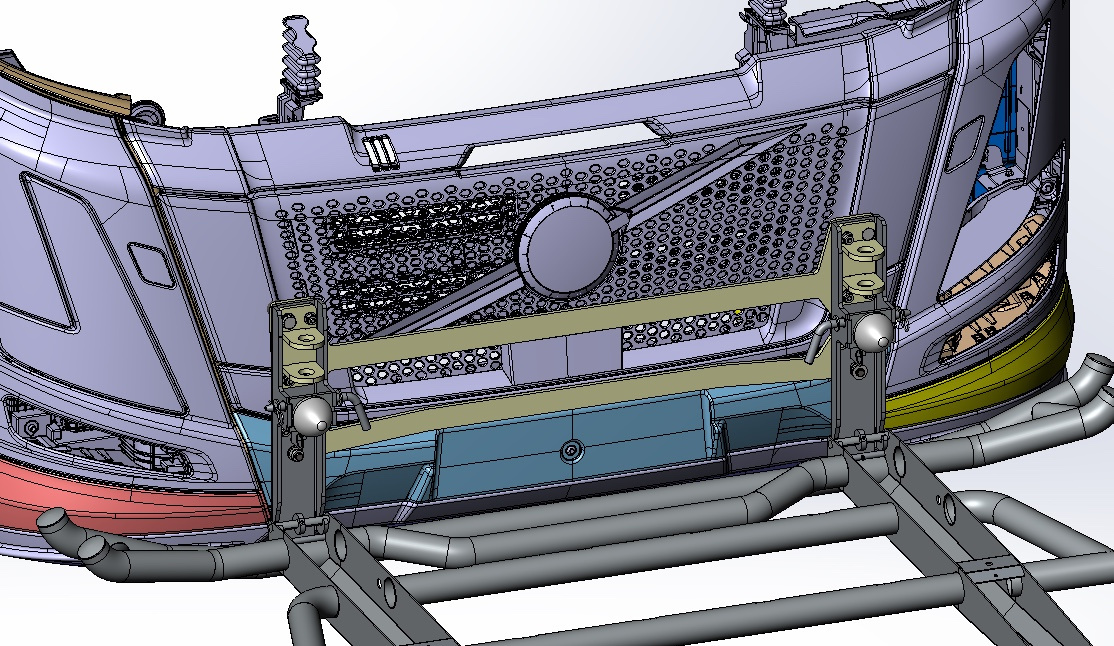 - Vehicle front grille can be opened and cabin tilted with the bull bar in place.
