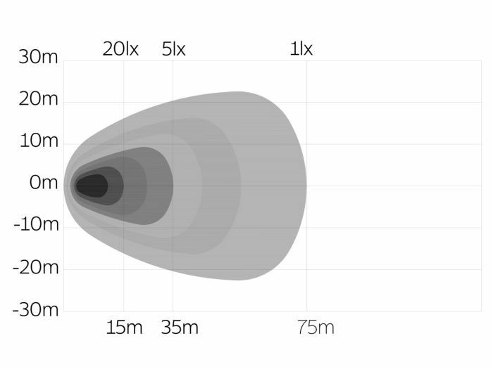 - 1 lux at 75 m