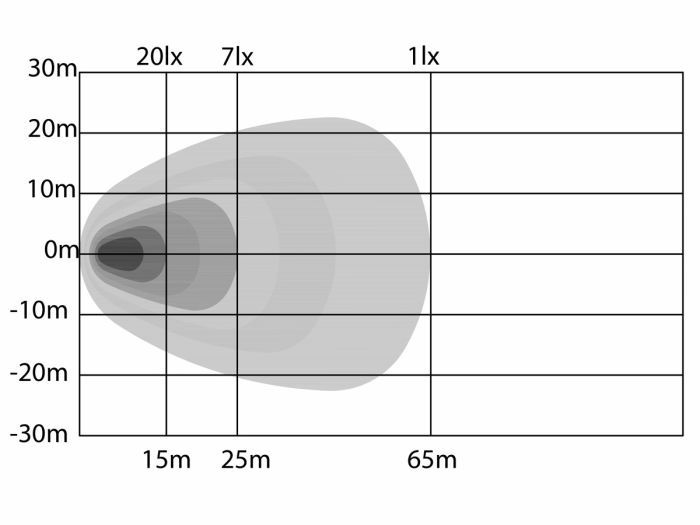 - Light output: 1 lux @ 65 m
