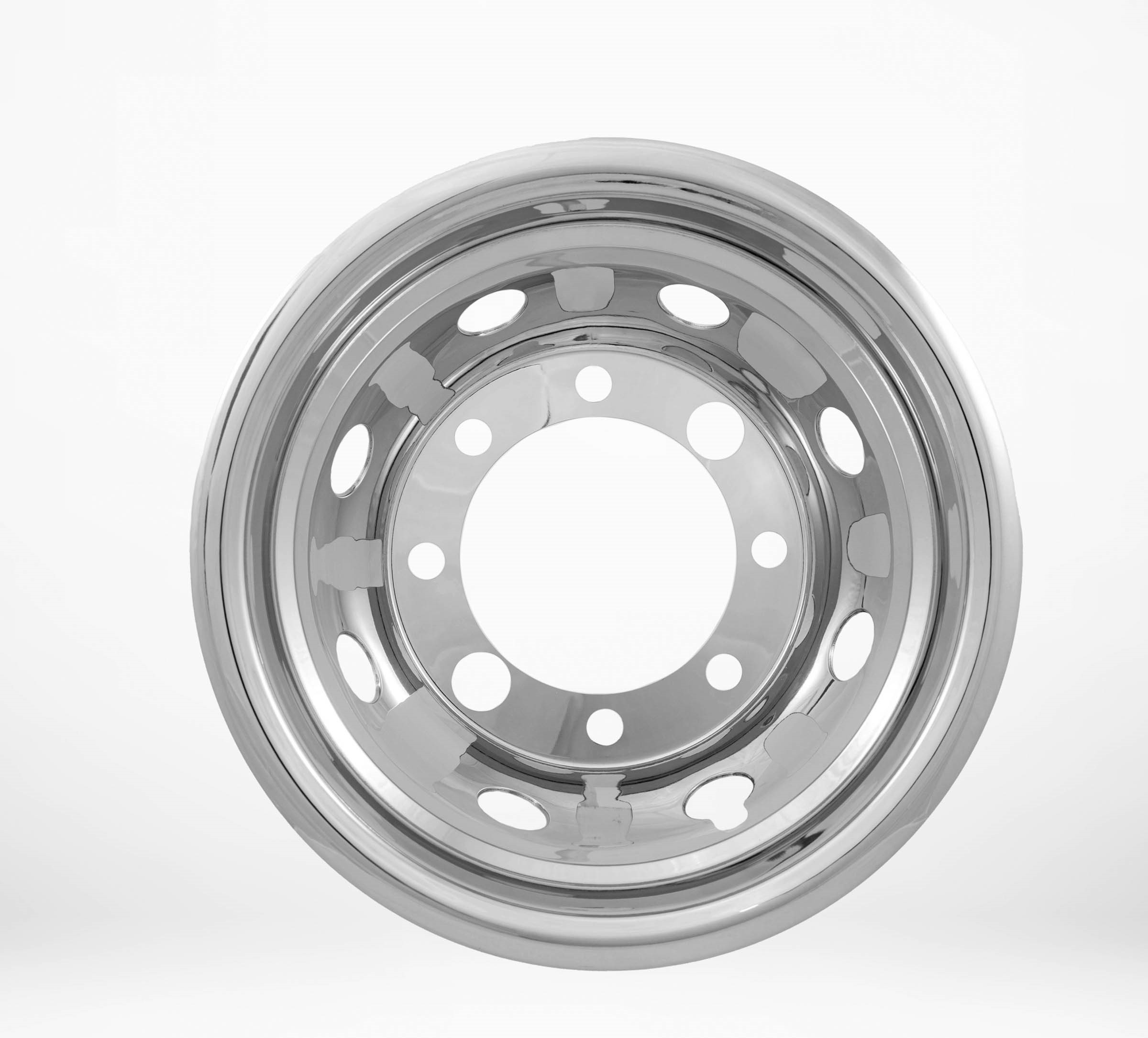 A pair of wheel covers made of stainless steel with an open center for 19,5" rims